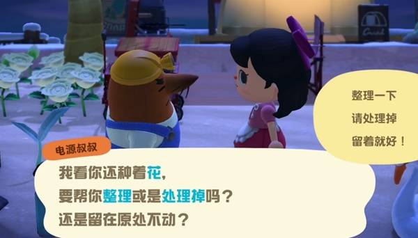 花有两个选项,整理一下是放进仓库,请处理掉是扔掉。
