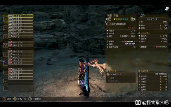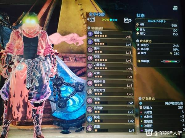 霸主三件套+辟兽之力+凶恶两件套+百会,章鱼恨击就当送的,训练场无药、无逆袭,力解挑战,怨恨,辟兽之力全开真蓄1800左右,追击十字斩最后一刀可以打1300多,更重要的是即便武器选攻击激化也还有百会,耐绝也没落下,还有两个一级孔可以调整。