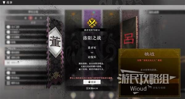 【董卓篇】,勇战无双之人”难度下完成【洛阳之战·后半】关卡的挑战获得。