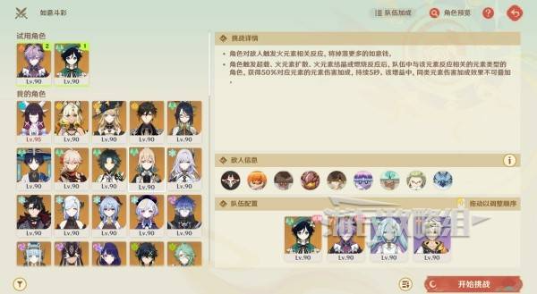 积分倍率选择10倍,或根据自身练度来酌情降低。本关阵容可以用温迪担任输出,利用温迪+杜林爆发扩散火元素击败敌人,剩余两个位置建议选择增伤辅助,3号位可以替换为任意增伤角色,4号位建议优先考虑班尼特。在战斗期间注意杜林的2次战技释放时间,不要用普攻切换形态,否则实际表现会略逊于双战技状态。