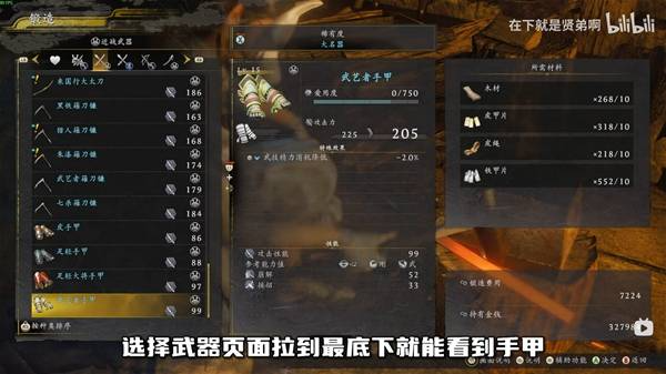 选择武器页面,拉倒最底下,就能看到手甲。