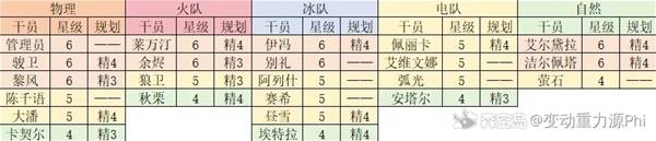 根据属性分队重新整理一下每个属性的干员放心养的表格