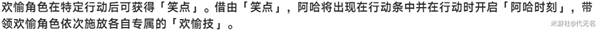 而欢愉角色制造的“乐子”可获得【笑点】,阿哈参与战斗进入行动条中,当阿哈行动时会进入【阿哈时刻】,各欢愉角色会依次施放自己专属的【欢愉技】