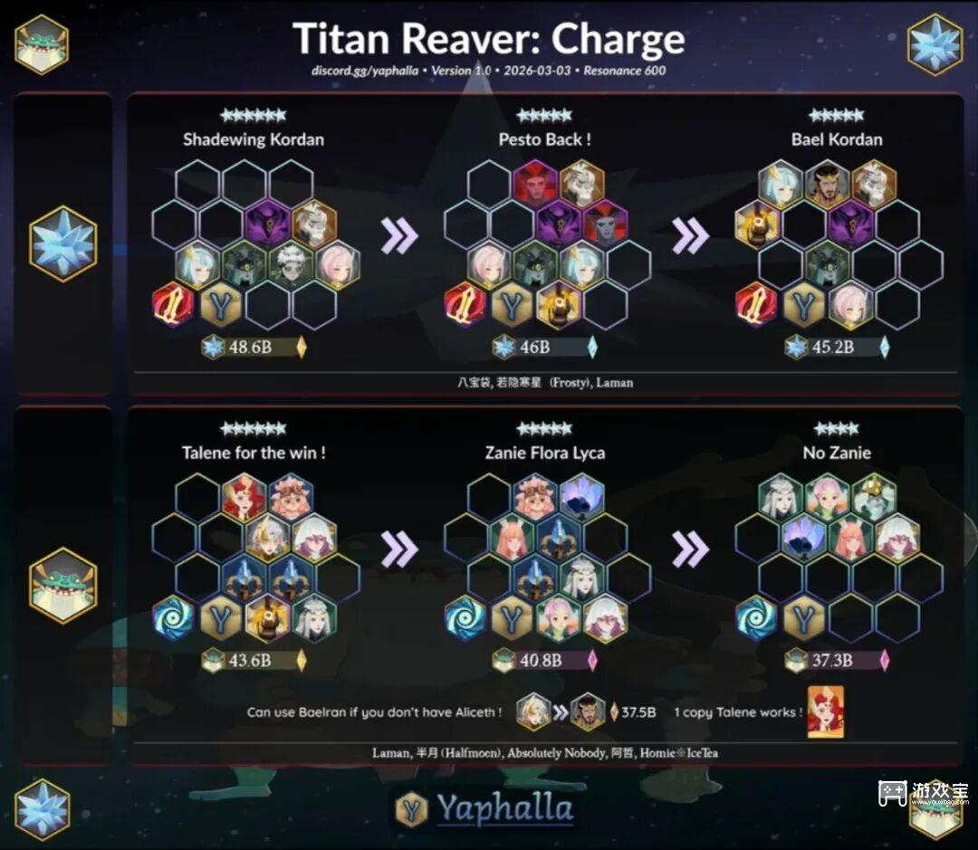 8、首先是突进的阵容推荐,已经按照一队和二队进行列举了。每一个阵容对应的出分参考也在图上可以看到: