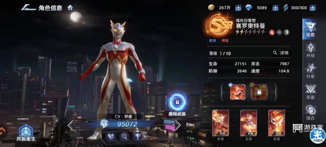 这时候可以去选择培养【终极赛罗】来弥补前期灼烧队伤害不足的问题。