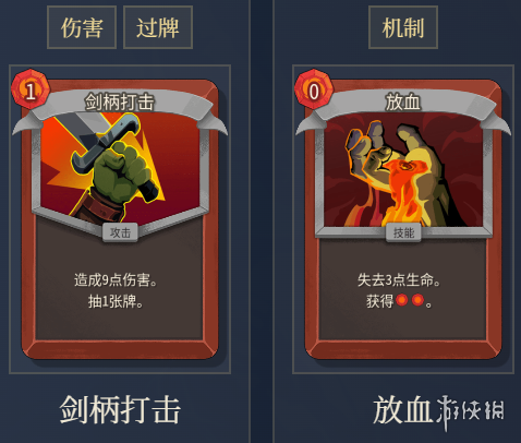 循环逻辑:放血提供能量,剑柄打击抽牌并输出,两者互相配合,一回合内无限打出。