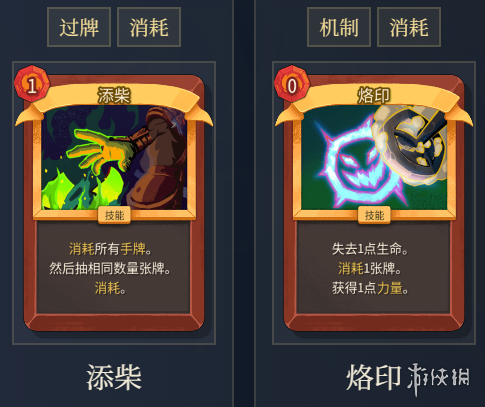 辅助卡牌:添柴、熔印等卡牌帮助消耗废牌、叠力量,提升循环效率和输出。