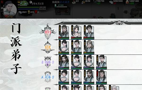 1、首先,需要踩点,快速找到目标。游戏有个很方便的方式,就是每个门派的左侧第一个按钮进去的第一个。可以看到弟子名录。在这里可以快速看到所有人员的信息。一个一个看一下。比如我这个2年的档,哦吼,仅仅只是紫名,居然带了个红武,关注上。