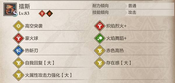 擂斯:三猜群攻带赤色高热、火强大、存在感大、自我回复大