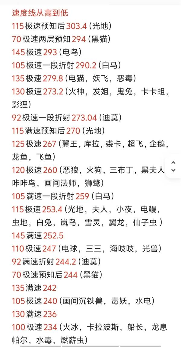 《洛克王国世界》中PVP模式速度是非常重要的属性,那么各个精灵的速度值是多少呢,下面请看“雨宫昂辉”带来的《洛克王国世界》PVP精灵速度线排行,希望能够帮助大家。