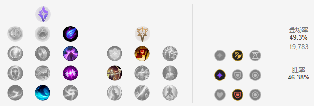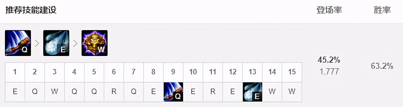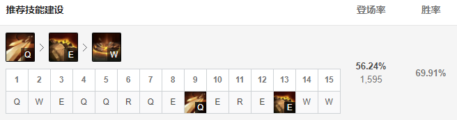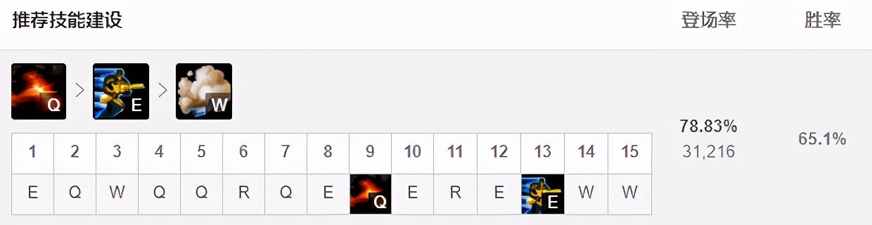主Q副E。Q是岩雀最主要的输出技能,在野区到处都是采石场,岩雀可以无限使用Q,伤害极高。E技能搭配W能够打出高额伤害。W岩突是岩雀的控制技能,在gank时只要被抬到,非死即残。