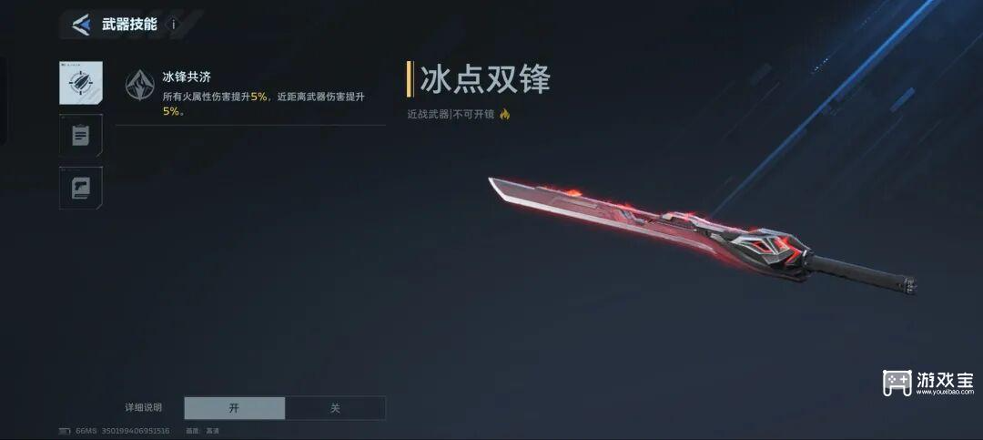 2、近战选择:冰点双锋,所有火属性伤害提升5%,近距离武器伤害提升5%。