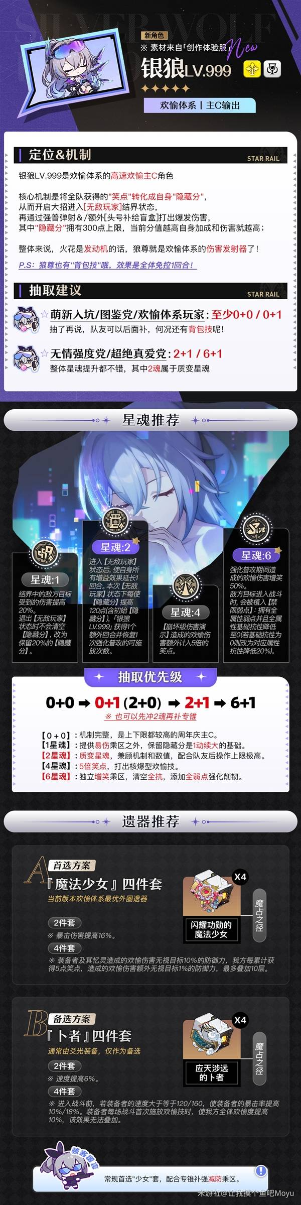 《崩坏星穹铁道》银狼lv.999绰号狼尊,是欢愉体系的大C,那么狼尊要怎么培养,值不值得抽呢?下面请看由“让我摸个鱼吧Moyu”带来的《崩坏星穹铁道》狼尊培养与抽取建议,一起来看看吧。