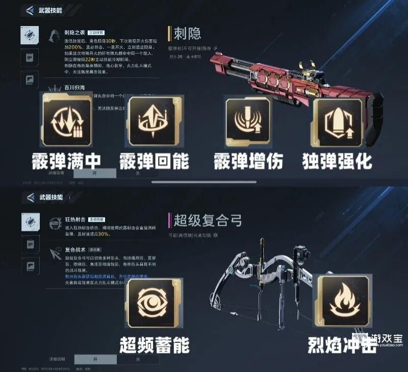 匿踪开启后自身隐身8秒,附带移速提升、规避锁定与缓慢回血。进阶后为遁形,前5-9次开火不显性且必暴击,弱点伤害大幅提升,还可叠层增伤、返还技能充能 。搭配刺隐时,隐身可安全贴脸BOSS,规避高伤技能,破隐与前几发必暴击能瞬间打满爆发,完美契合近战贴脸输出流派,大幅提升生存与攻坚能力。