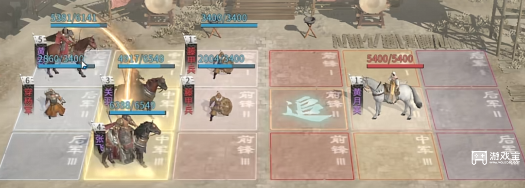 2、第二关黄月英,我们用黄忠、关羽、张飞,技能如下: