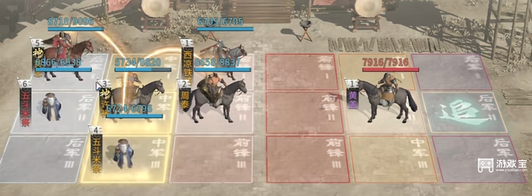 6、第六关黄盖,我们用黄忠、许褚、周泰,技能如下: