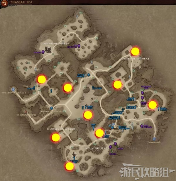 夏斯尔沙海的隐藏副本大部分都在地图南部,北部较少。推荐按顺时针或逆时针进行寻找。