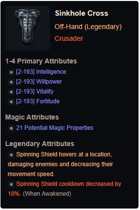 投掷一个旋转的盾牌,对其路径上的所有敌人造成 X 点伤害。护盾会返回,将敌人拉向你的路径并造成额外的 Y 点伤害。最多 充能3 次。玩家每 3 秒只能受到一次旋转之盾的影响。