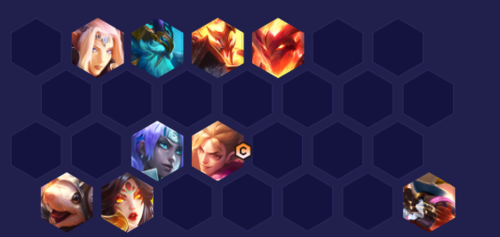 这是套2C核心阵容,该阵容是男刀和霞的双C体系,男刀建议放在中间防止假赛,霞放角落稳定输出。