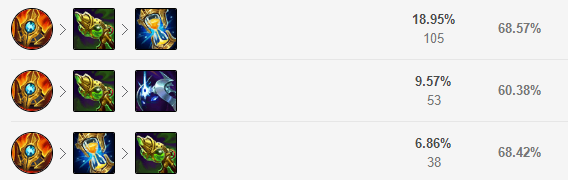星蚀是杰斯的首选神话装备,能够增加穿甲和爆发。魔宗可以提升杰斯的蓝量,夜刃给自己戴套,增加保护能力。后续可以选择幽梦、减速矛。