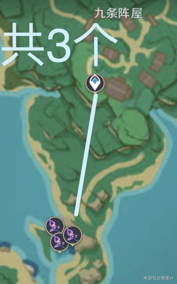 接着是平海砦东北方向的传送点按照路线采集有(3株)