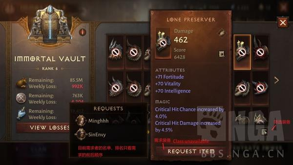 宝库的装备分配是最容易引发各种破事争吵的。毕竟极品3+3装备还能指定部位,真的是人人都在盯着。我建议各个不朽者公会都推出一套严格的宝库制度来进行管理。比如每周必须交满所有的印记(以避免有人私藏印记不交,直接攒两三周一次交完抢装),每个人只允许需求X次且不允许在服务器重置前最后X小时更改需求等等。这些具体还是看公会的制度来决定,但是不管怎么样,只要有严格的规定和靠谱的管理层。争吵的情况就会少很多,也避免了氪佬玩家因为宝库装备退会/甚至加入暗影来对抗自己的老东家等等诸如此类的情况。