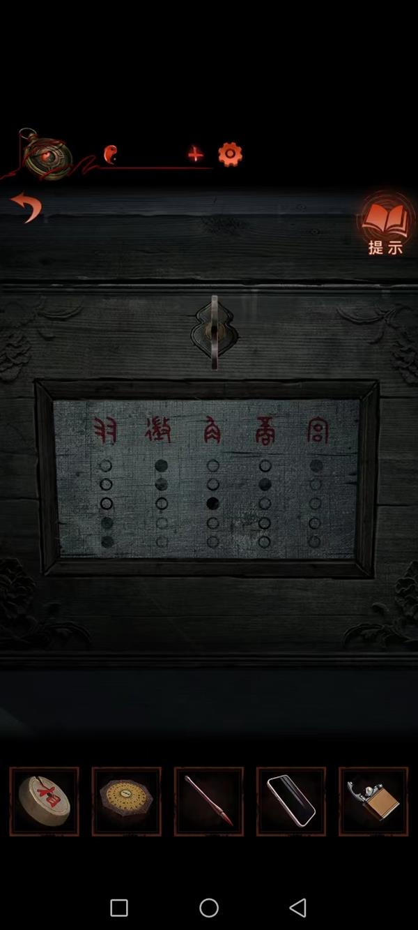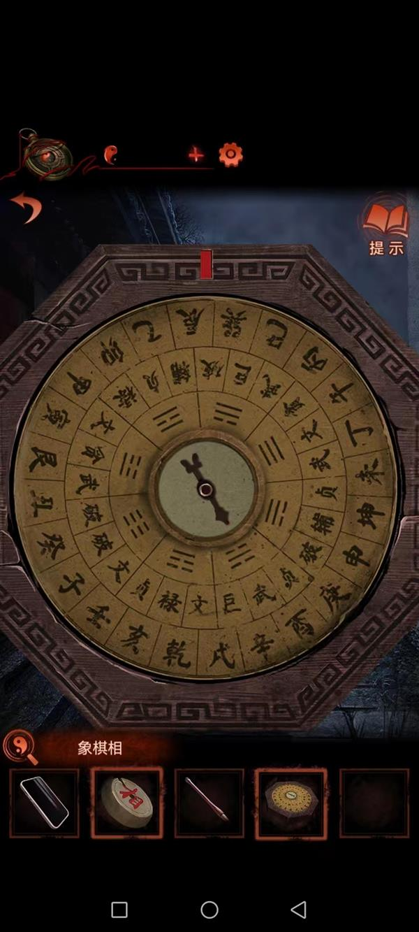 5、回再早的房间内,把黑白珠子放阴阳鱼盒子的眼珠子凹槽内,获得八卦盘,在巷子里打开罗盘,把红点转到指针出,红色指到的就是右边房间门锁的密码(记得八卦得反着看),阴阳阳破辰;