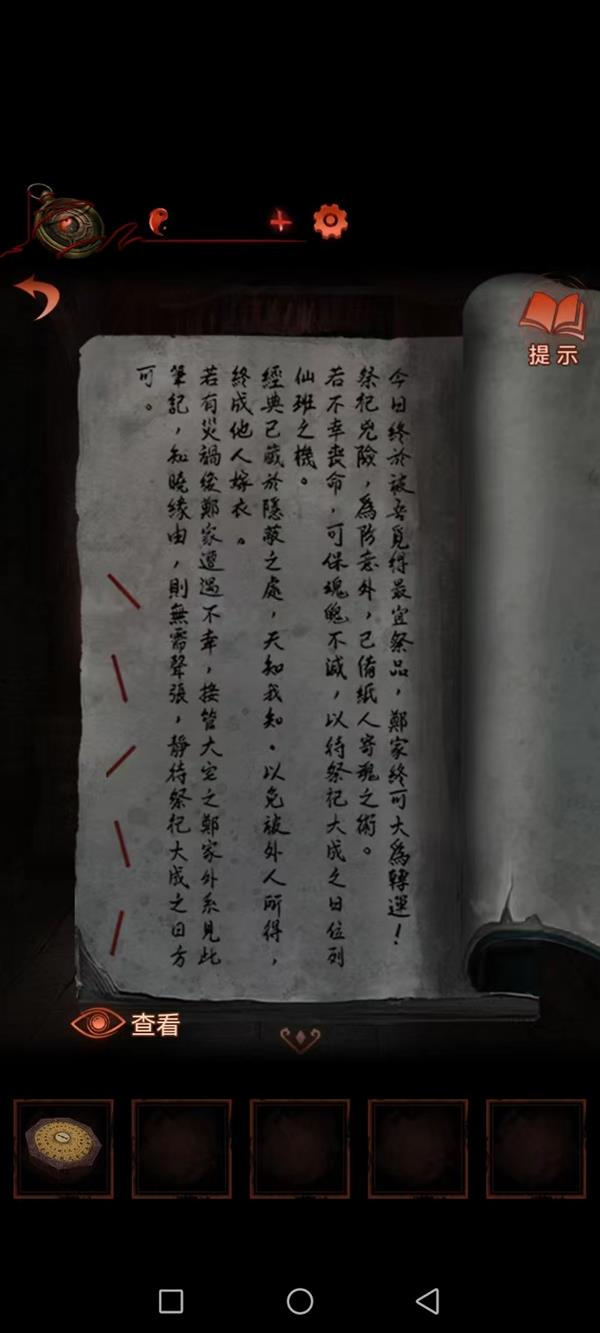 6、进门看红书知道要给纸人画眼睛嘴巴,看黄书书找破阵之法,找到乱北斗之阵,给纸人画黑色眼睛,红色嘴巴,然后用手机看一下,触发小高能;