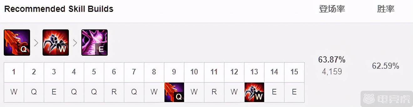 Q是蜘蛛最主要的输出技能,无论是人形态还是蜘蛛形态都有着生命百分比的伤害,能够让她很好的进行秒杀。W技能可以帮助蜘蛛快速刷野,我们选择副加。