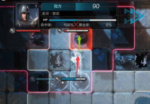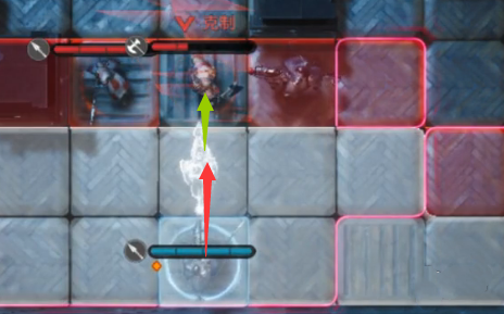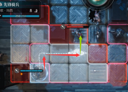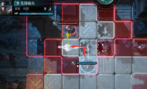 第二步:移动中间和左边的先锋骑兵,使用技能【冲撞】击败敌人。并让自身往前借势移动一格,触发骑兵阵型。