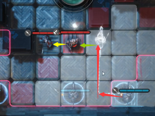 如下图所示,先锋骑兵使用【冲撞】攻击右边的枪兵,触发地形碰撞将其击杀。
