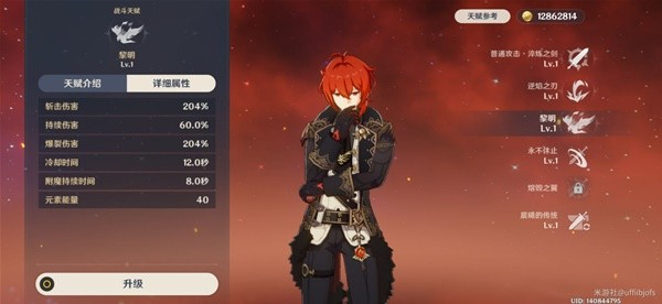 由图可得,迪卢克的元素爆发伤害比例也是很高的(这还只是一级大招),与优菈同理,都是双手剑中的输出角色,任何方面都是非常适合迪卢克的。