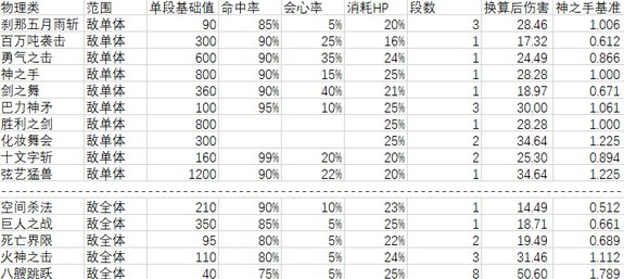 物理类部分常见技能,其中有多段的都是按最高段数计算,比如刹那五月雨斩是2到3次,死亡界限是1到2次,火神之击是1到3次。