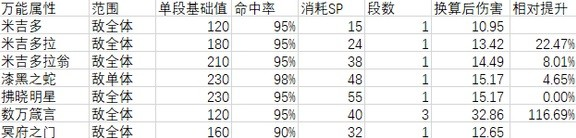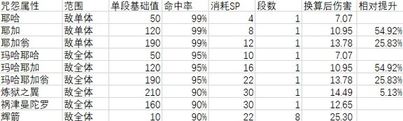 魔法技能部分,从火炎到核热6种属性的魔法技能伤害,基本都是这样的情况,祝福和咒怨有所区别。
