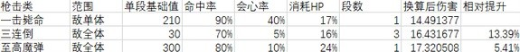 枪击类,被动技能枪弹狂热会心率+15%,建言会心率翻倍,且会心上限为67%,实际上最终还是至高魔弹更强,只要你被动加会心技能够多,加上学妹的勇气步伐提升暴击率,很容易叠满。当然一击的好处就是动画帅气加成型简单。