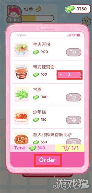 2、在点餐界面选中想要的食物加入购物车,点击Order;