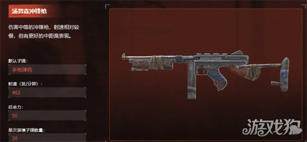 汤姆逊冲锋枪是一个属于伤害中等的冲锋枪,在中近距离的时候,他可以发挥出极好的战场优势,并且冲锋枪还有着比较高的射速,它可以在敌人悄悄靠近时,快速进行射杀能够,直接对对面的火力进行压制,所以在中等这个距离进行冲突的时候,汤姆逊冲锋枪可以给玩家们迅速带来战斗节奏,他的单次子弹数量也适中,刚好有20发,当距离合适的时候,冲锋枪会给玩家们带来更多惊喜。