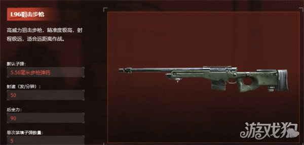 而所有武器中步枪自然也拥有着远距离的步枪这一类型,L96狙击步枪就属于可以远程输出的步枪,之所以能够远距离输出是因为它本身的规格达到了军用级别,整个武器精准度也是相当之高,但是他单次中能够装的子弹非常少,只有5颗,它的作用主要就是靠伏击敌人,在敌人还在远距离进行靠近的时候,玩家们就可以使用这个武器进行拦截。