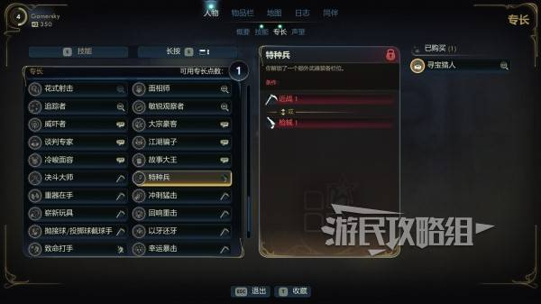 第一种比较快捷的解锁额外武器栏位的方法是解锁【特种兵】专长。此专长需要近战或枪械技能至少达到1点,解锁后将永久开启额外武器栏位,并且没有使用条件限制。