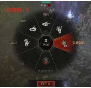还有一种快捷的方法,就是通过【动作轮盘】把【天界符印】分配到里面来使用。