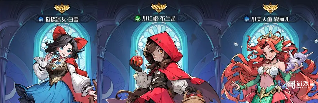 双核驱动:小红帽与白雪公主形成双爆发输出,前者持续高伤害,后者借助小美人鱼的减速护盾打出爆发。