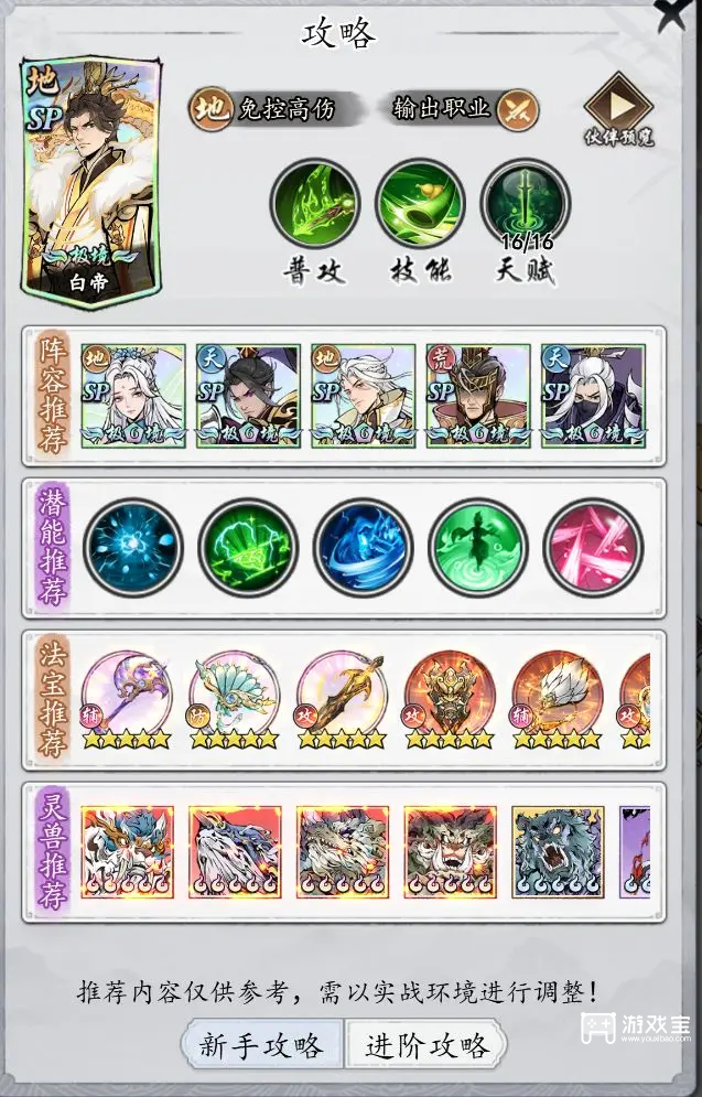 推荐阵容: 白帝(免控高伤)+洛尘(单体高伤)+ 秦戈(群伤反击)+ 叶天帝(叠怒高伤)+ 云曦(群疗加攻)+ 石昊(多伤收割)