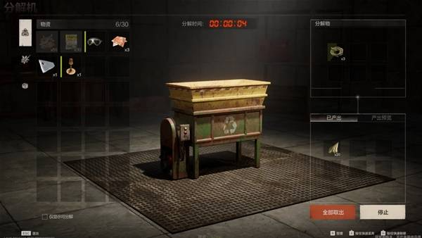 从地铁刷完物资后返回安全区,再次用分解机处理多余装备,失控进化安全区分解无折扣,分解后能累积到足够的废料(至少400)。