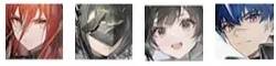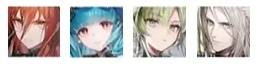 分别是:管理员(玩家角色)艾尔黛拉(签到赠送)佩丽卡(初始小队)狼卫(初始小队)陈千语(初始小队)昼雪(里程碑奖励)
