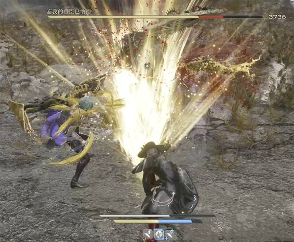 该配装主要靠双手剑的削韧来压制敌人起身,本作盾牌的抗伤效果很好,前期面对BOSS举盾能无伤连扛2-3次攻击。