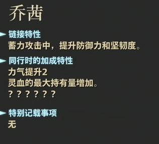 同行时可以增加力气等属性效果,链接状态蓄力攻击可以提升防御和坚韧,最契合的选择。