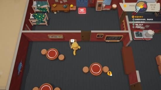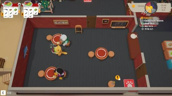 客人吃完以后需要将吃剩的脏盘扔进水池,按F进行清洗,水池可以扔进多个盘子。