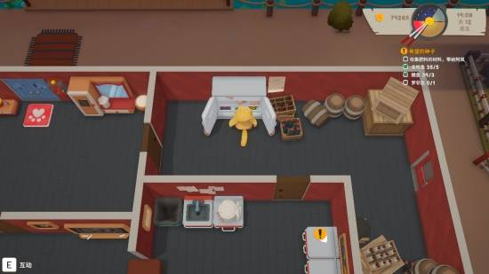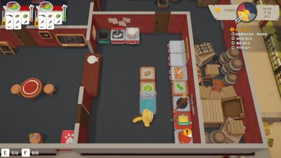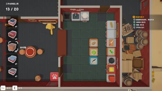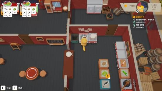 去食材箱按E拿起对应的食材,然后前往对应的工作台按E放下,然后按F操作。