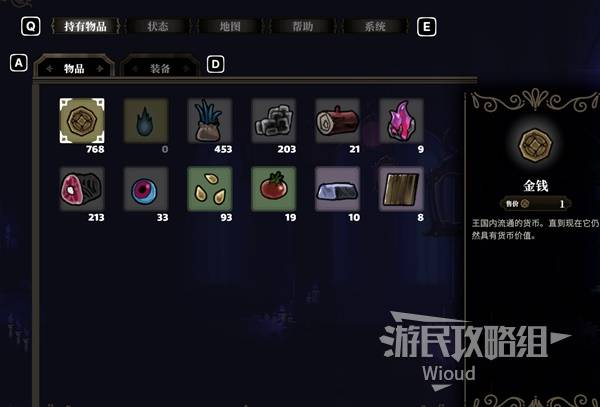 持有物品:可查看当前角色收集的所有物品与装备信息。