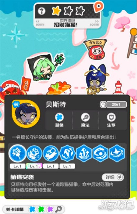 其中贝斯特作为蓝色系角色向目标发射追踪猫猫拳,当命中之后,对范围内目标造成较高的伤害以及击退,这属于魔法定位,是守护全员的法师,能够为全员队伍提供相当出色的护盾和后台输出,全程有护盾覆盖的加持,能够全方位降低队伍的承伤,在移动的过程当中可以借助地图快速移动标志调整位置,成为整个队伍当中的后台保障。法师狄安娜大招具有治疗作用,切换之后即可快速回血,当大招结束,快速点击其他的神明头像,就能够让全队回血,挑战招财猫猫这个boss时,此角色是不容错过的。
